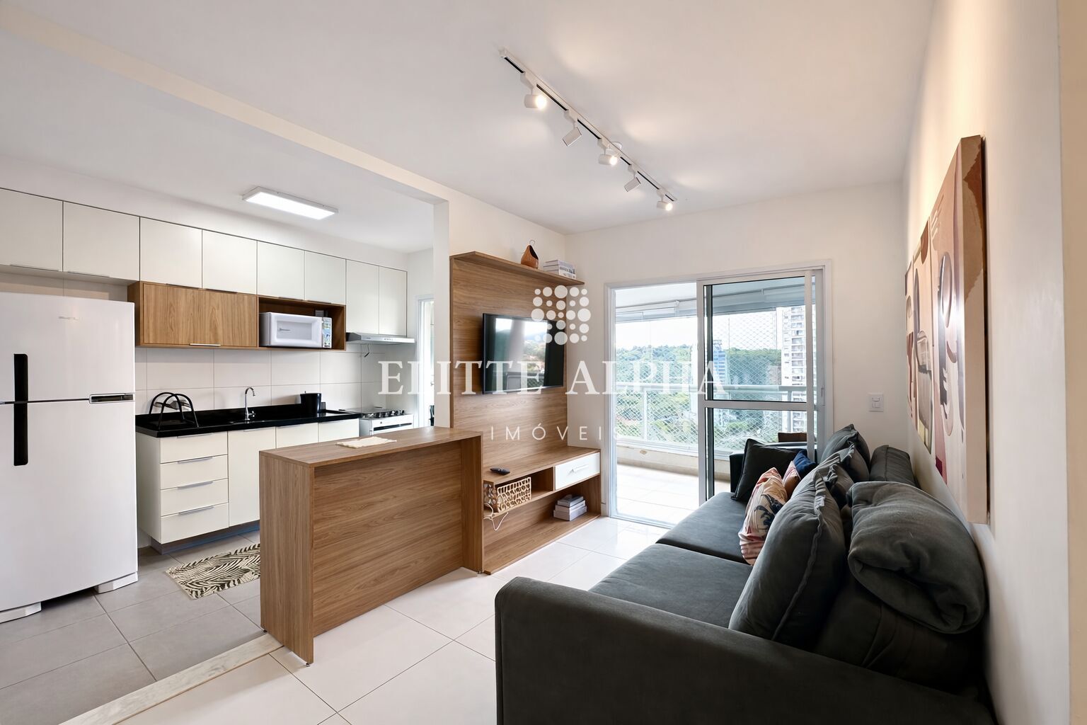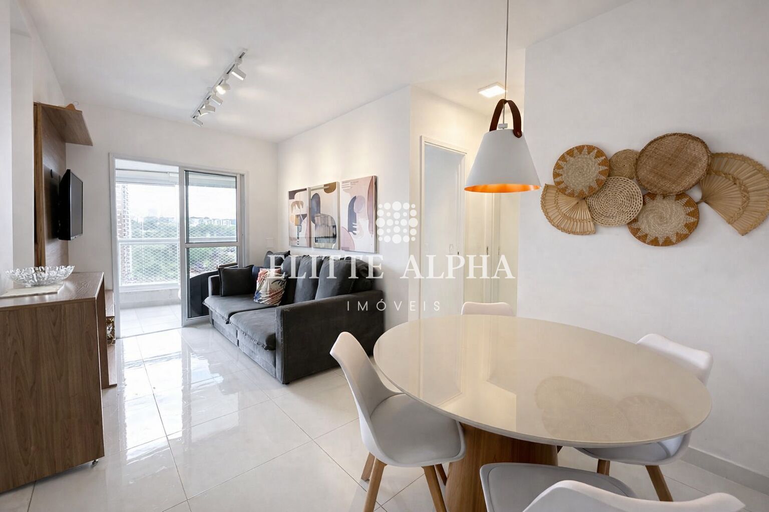 Alphaville está totalmente mobiliado e pronto para morar, com ambientes modernos e bem distribuídos.